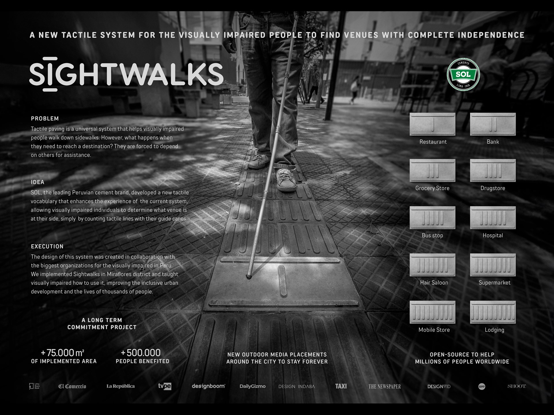 Sightwalks was launched in Miraflores, the most visited and important district in Peru. We created a program to teach visually impaired how to use the new system with classes, braille brochures and audio descriptions.
