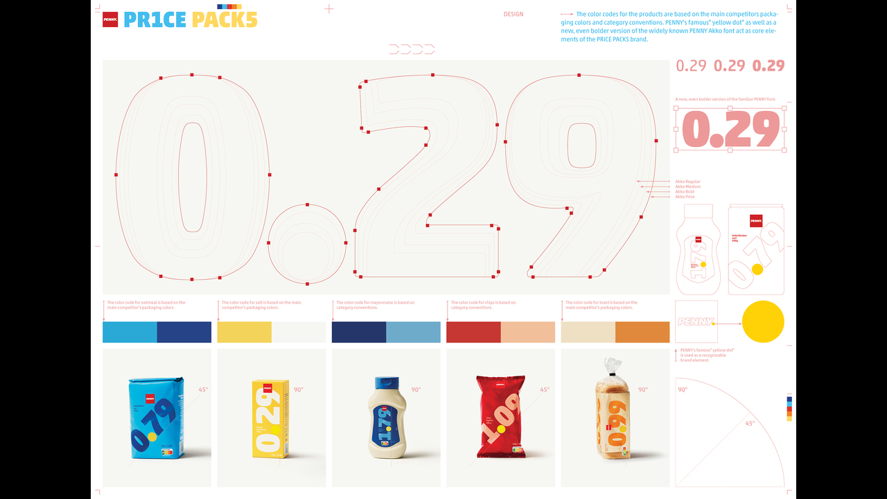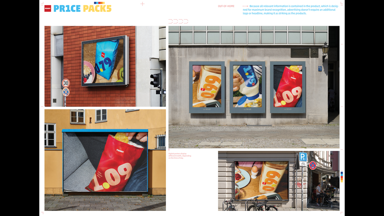 Shoppers have been facing steep grocery price increases over the last years. New retail tactics like dynamic pricing are adding further discomfort. How can German discounter Penny demonstrate their commitment to low and stable prices? IDEA: PRICE PACKS is the first brand that’s all about the price. Because the packaging design focuses entirely on the price. Considering the usual packaging production lead times of several months, this becomes an irrevocable commitment to price stability.