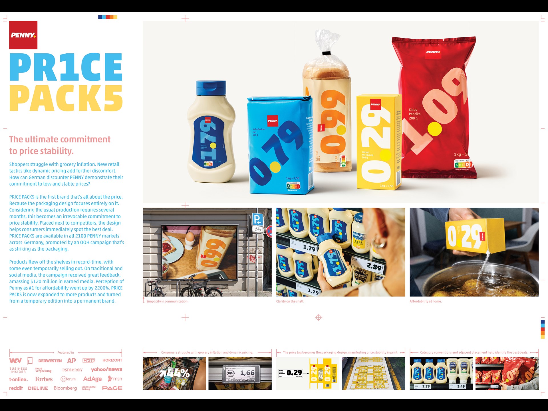 Placed next to competitors, the design helps consumers immediately spot the best prices. PRICE PACKS are available in all 2100 Penny markets in Germany, promoted by an OOH campaign as striking as the packaging. RESULTS: Products flew off the shelves in record-time, with some temporary selling out during launch week. On traditional and social media, the campaign received raving reviews, earning $120 million in free media.