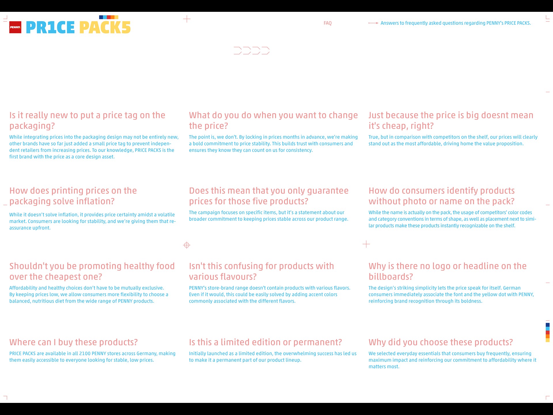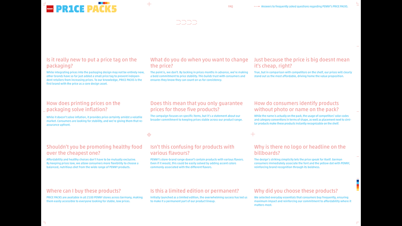 Shoppers have been facing steep grocery price increases over the last years. New retail tactics like dynamic pricing are adding further discomfort. How can German discounter Penny demonstrate their commitment to low and stable prices? IDEA: PRICE PACKS is the first brand that’s all about the price. Because the packaging design focuses entirely on the price. Considering the usual packaging production lead times of several months, this becomes an irrevocable commitment to price stability.